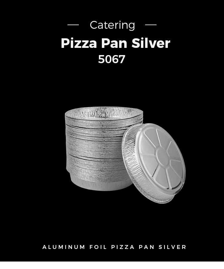 Ang 5067 type 7 pulgada na kulubot na pizza pan pilak aluminyo foil container na ibinigay ng Yunchu aluminyo foil supply pabrika ay gawa sa mataas na kalidad na pilak na aluminyo foil na materyal, na may isang naka-istilong at matikas na hitsura at mahusay na pagganap ng pangangalaga ng init. Ang malaking disenyo ng kapasidad ng pan na ito ng pizza ay nagbibigay-daan upang madaling mapaunlakan ang iba't ibang mga pagkain, kung ito ay pangunahing kurso para sa isang hapunan ng pamilya o isang kumbinasyon ng multi-dish. Ang malaking puwang ng imbakan nito ay sapat na upang hawakan ang isang malaking halaga ng pagkain, kung ito ay isang pagtitipon ng pamilya o isang kumbinasyon ng multi-dish para sa takeaway, madali itong mapupuksa nang hindi nababahala tungkol sa hindi pagkakaroon ng sapat na pagkain.