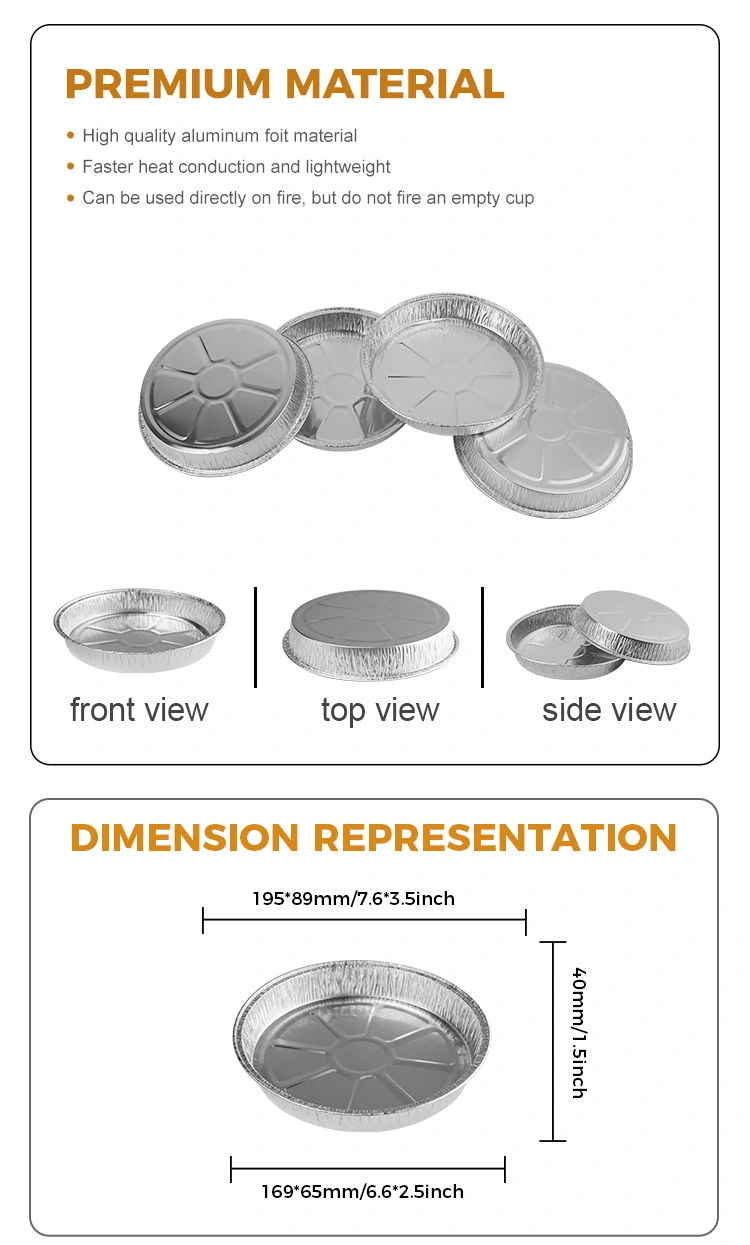 Nag -aalok ang Yunchu aluminyo foil ng 7 pulgada na kulubot na pizza pan pilak aluminyo foil container na may numero ng modelo 5067. Ang produkto ay may itaas na diameter na 168 mm (tinatayang 6.6 pulgada), isang mas mababang diameter na 145 mm (approx. 5.7 pulgada), at isang taas na 25 mm (approx. 0.9 pulgada). Sa pamamagitan ng isang kapasidad na humigit -kumulang na 400ml (humigit -kumulang na 14.1 oz), mainam ito para sa pagluluto ng pizza nang hindi nakadikit sa panahon ng pagluluto, madaling palayain ang amag, at walang amoy. Bilang karagdagan, ang ganap na crimped na disenyo nito ay pumipigil sa pagkain mula sa pag -iwas, pagtaas ng pagiging praktiko. Maaari rin kaming magbigay ng mga serbisyo sa pagpapasadya ng logo upang matulungan kang palalimin ang impression ng iyong mga customer at mapahusay ang kakayahang makita ng iyong tatak.