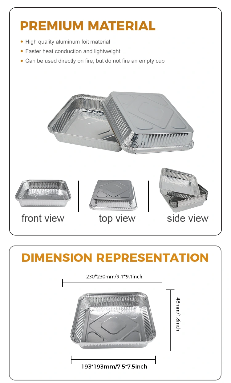 Ang Yunchu aluminyo foil supplier ay gumagawa ng mga magagamit na BBQ skewers pilak aluminyo foil container, na angkop para sa mga order ng takeaway, maliit na cake sa mga panadero, meryenda ng pamilya, at restawran. Ligtas at malusog, ang mga ideya sa pagkain ay hindi limitado, ang mga kagamitan sa kusina ay isang mabuting kasosyo upang madaling magluto ng pagkain, air fryers at iba pang kagamitan ay lumalaban sa init at langis-patunay, madaling maghurn Nag -isip ang disenyo ng disenyo upang maiwasan ang pag -scrat ng iyong mga kamay. Maramihang laki ay magagamit para sa iyo upang pumili mula sa angkop na iba't ibang mga sitwasyon sa paggamit. Kung mayroon kang anumang mga katanungan o nangangailangan ng karagdagang impormasyon, mangyaring huwag mag -atubiling makipag -ugnay sa amin.