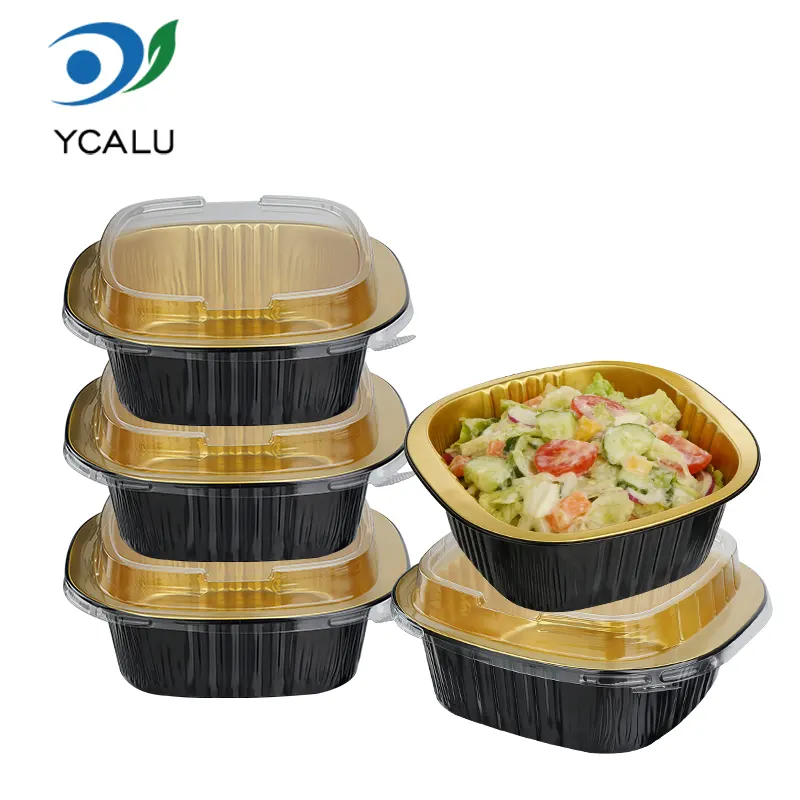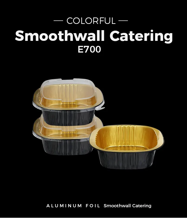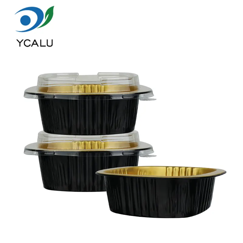 ​Ang disposable binaural square box ng Yunchu Aluminum Foil Supplier na black gold light-walled aluminum foil container ay gawa sa food-grade 8011 aluminum alloy foil. Ang mga ito ay ginagamot ng mataas na temperatura na pagsusubo at mga proseso ng isterilisasyon upang bumuo ng isang siksik na layer ng oksido sa ibabaw. Wala silang mabibigat na metal at walang amoy. Maaari silang direktang makipag-ugnayan sa lahat ng uri ng pagkain at maiwasan ang pag-ulan ng mga nakakapinsalang sangkap sa mataas na temperatura. Ginagamit man ang mga ito sa paghawak ng maiinit na pagkain, malamig na pagkain, dessert o sarsa, mapoprotektahan nila ang kaligtasan ng pagkain at makasunod sa maraming certification sa kaligtasan gaya ng FDA at SGS, na ginagawang mas secure ang bawat kagat. Binasag ng kakaibang black gold light wall na disenyo ang monotonous texture ng tradisyonal na aluminum foil container. Ang matte na itim na gintong coating at makinis na ibabaw ng dingding ay nagdudulot ng high-end na kahulugan. Hindi lamang ito ay may namumukod-tanging hitsura, maaari rin itong epektibong humarang sa liwanag at oxygen, maantala ang oksihenasyon ng pagkain, matatag na nakakandado sa aroma at kahalumigmigan ng pagkain, maiwasan ang paglipat ng amoy, at panatilihin ang orihinal na lasa ng pagkain sa mahabang panahon. Ang makinis na ibabaw ng dingding ay walang mga grooves o wrinkles, na ginagawang mas malamang na mag-breed ng bacteria at madaling linisin. Maaari rin itong mas mahusay na umangkop sa pag-customize ng pag-print, na tumutulong sa mga tatak ng pagtutustos ng pagkain na pahusayin ang kanilang pagkilala at kalidad.