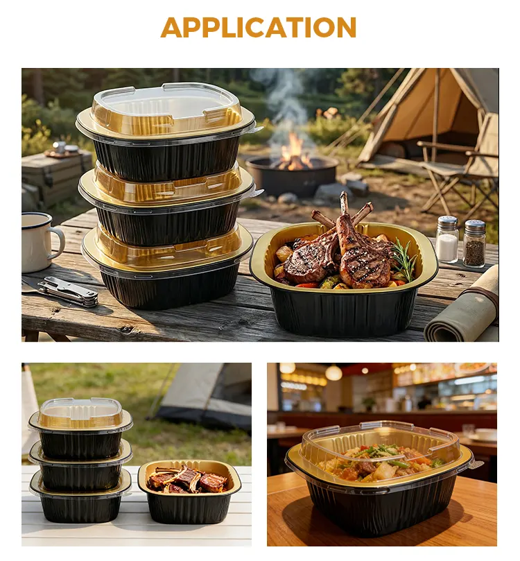 • Disposable binaural square box black gold na Aluminum Foil ContainerDisposable binaural square box black gold na Aluminum Foil Container