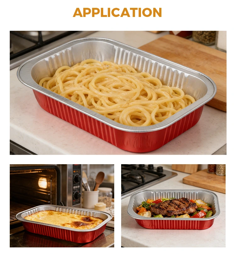 -Itong Red Disposable catering  Aluminum Foil Food Storage Container ay selyado at hindi tumagas. Ang tumpak at angkop na disenyo ng sealing lid ay nagsisiguro ng mahigpit na pagkakaakma sa gilid ng lalagyan pagkatapos isara, na epektibong pinipigilan ang pagtagas ng sopas at langis. Ito ay ganap na nireresolba ang mga problema sa spillage na nakatagpo sa panahon ng paghahatid ng pagkain.