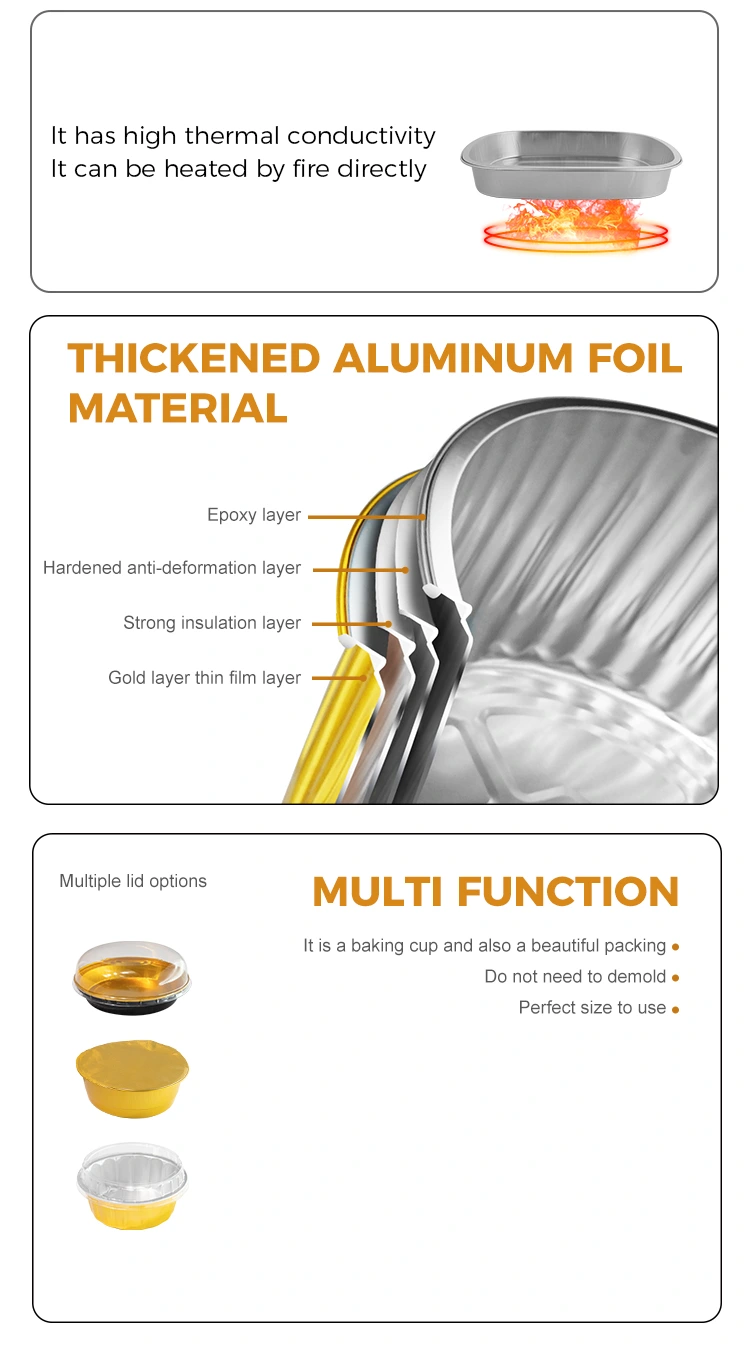 Ito ang perpektong packaging para sa mga egg tart, brownies, cupcake, solong hiwa ng pizza o patumpik na pastry. Ang pagkakabukod ng ari-arian ng aluminyo foil ay nakakatulong upang mapanatili ang init at malambot na texture ng mga pastry pagkatapos na sila ay lutong; perpektong pinapanatili nito ang lasa at angkop para sa takeout mula sa mga panaderya at cafe.