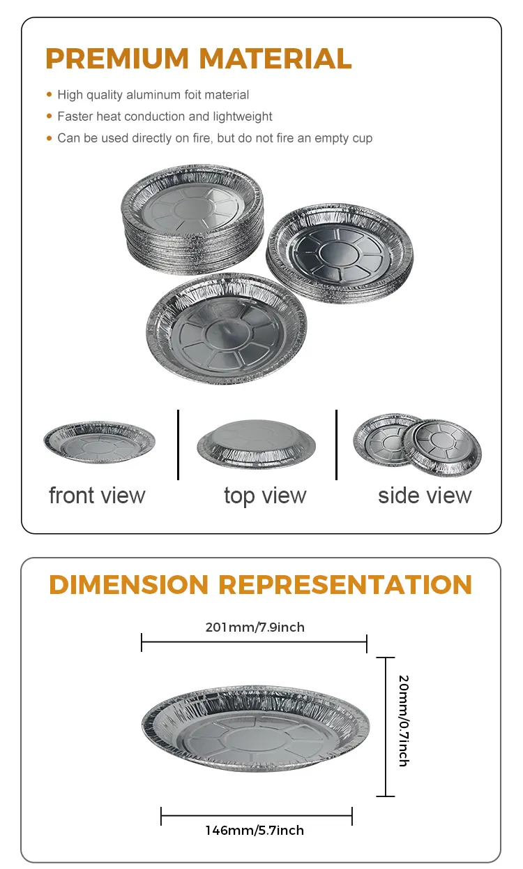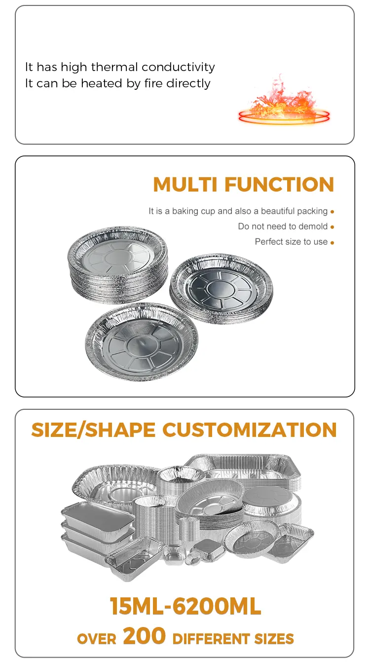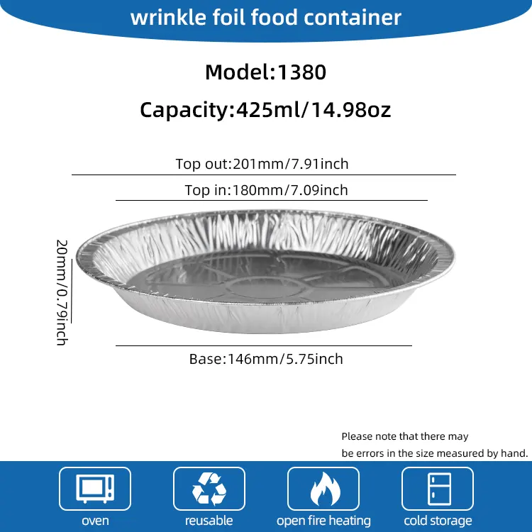 Ang Yunchu Aluminum Foil Disposable Disk Air Fryer Silver Aluminum Foil Container ay parehong hygienic at environment friendly. Ito ay gawa sa makapal at lumalaban sa kaagnasan na mga materyales na hindi madaling ma-deform at maaaring direktang kontakin sa pagkain. Hindi ito natatakot sa mataas na temperatura, hindi nasusunog, hindi nasusunog, at hindi madaling itapon. Maaari itong makatiis sa mataas na temperatura hanggang sa 250°C at angkop para sa iba't ibang paraan ng pagluluto gaya ng high-temperature baking, oven, at barbecue, kaya hindi na kailangang mag-alala. Maraming mga pagtutukoy ang magagamit upang matugunan ang sari-saring mga pangangailangan sa pagbe-bake ng iba't ibang laki, na nagbibigay-daan sa iyong madaling makayanan ang iba't ibang mga kinakailangan sa paggawa ng pagkain.