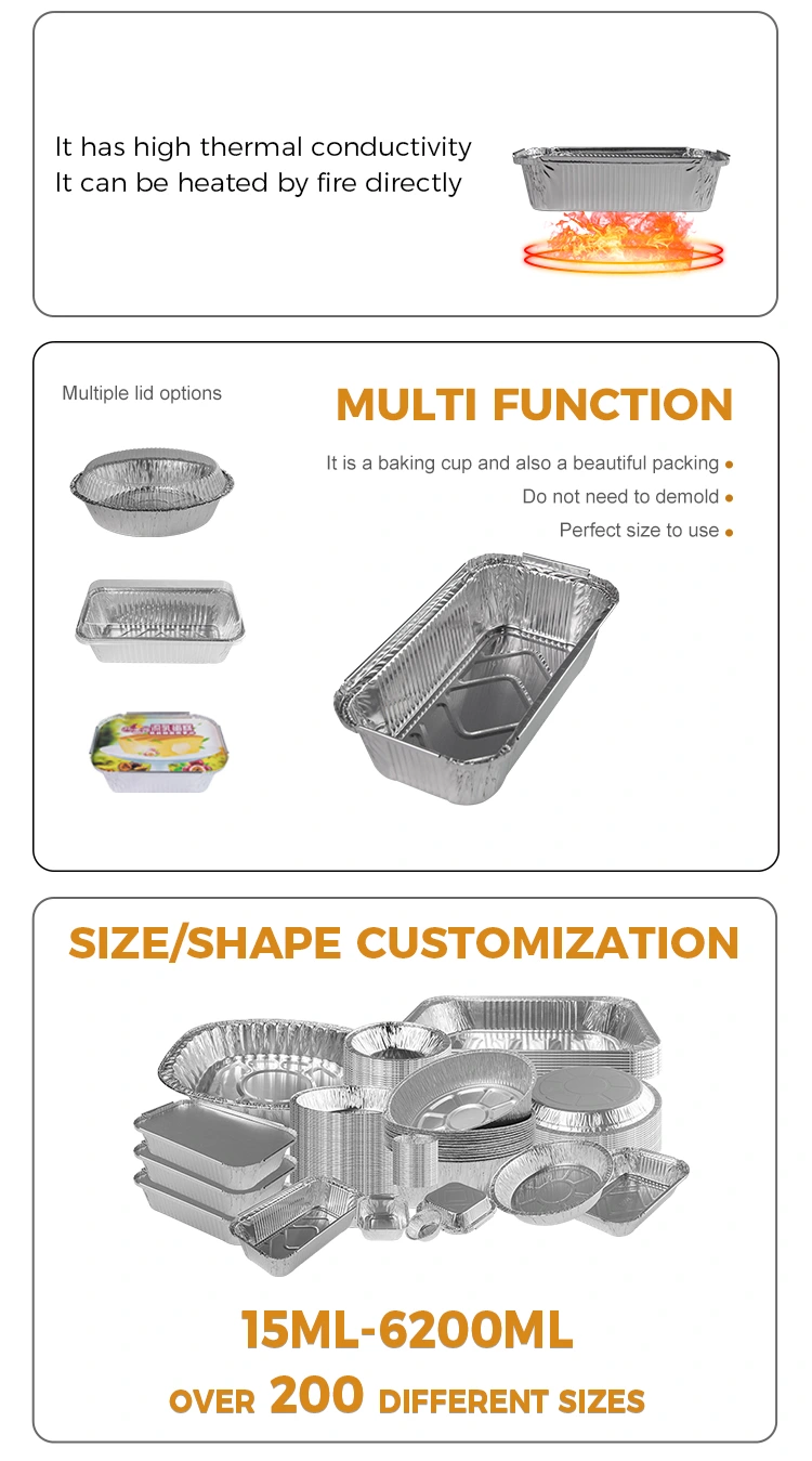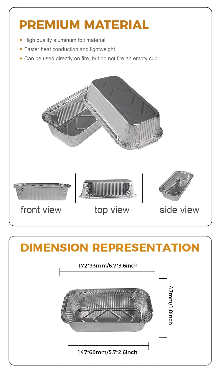 Ang disposable na hugis -parihaba na baking pilak aluminyo foil container mula sa Yunchu aluminyo foil supplier ay isang maraming nalalaman tool sa kusina na angkop para sa iba't ibang mga pamamaraan ng pagluluto tulad ng pag -ihaw, mainit na palayok, gratin, takeaway packaging, at marami pa. Ang lalagyan na ito ay sapat na compact upang magkasya sa iba't ibang mga kaldero at kagamitan, at nagmumula sa iba't ibang laki upang matugunan ang mga pangangailangan ng iba't ibang mga bukas na apoy na barbecue. Maaari itong magamit upang makagawa ng iba't ibang mga produkto ng pagkain, tulad ng mga air fryers at iba pang mga application ng kagamitan, paglaban ng init at langis, madaling pagluluto.