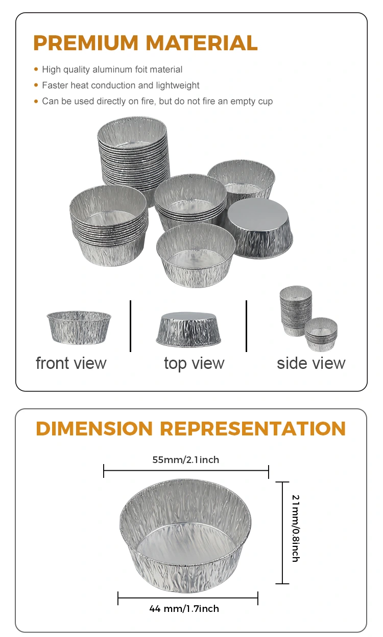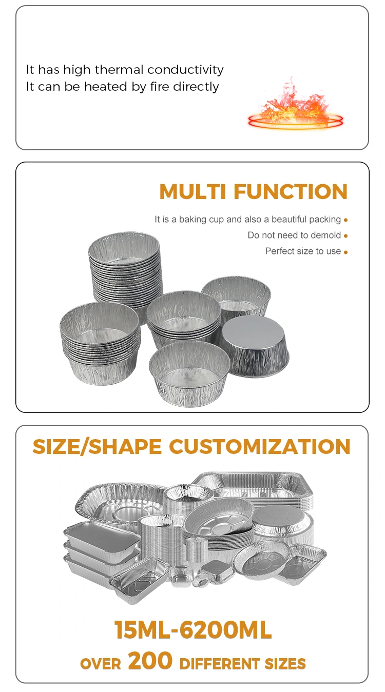 Ang disposable silver round dipping air fryer ng Yunchu Aluminum Foil Supplier na silver aluminum foil container ay gawa sa food-grade na pinalapot na aluminum foil. Ito ay ligtas, walang amoy, at walang nakakapinsalang ulan. Maaari itong direktang makipag-ugnayan sa lahat ng uri ng mga materyales sa paglubog. Ang maliit na lalagyan ng aluminum foil na ito ay maaaring isalansan upang makatipid ng espasyo, hindi ma-deform, at hindi tumutulo. Ang silver aluminum foil ay may pare-parehong texture at mahusay na thermal conductivity. Maaari itong gamitin sa mga restawran, cafe, pagtitipon ng pamilya, atbp. Ginagamit ito kasama ng mga meryenda sa mga air fryer, atbp. Kahit na naglalaman ito ng makapal na sarsa at mamantika na sarsa, hindi ito tumutulo. Pinapanatili nitong malinis at maayos ang tabletop at mga kagamitan sa kusina. Simple at maganda ang presentasyon ng foil sa iba't ibang eksena. Ang hitsura ng pilak ay maaaring itugma sa iba't ibang mga plato ng hapunan.