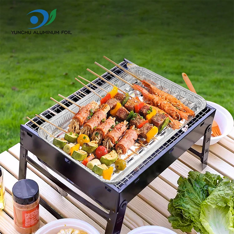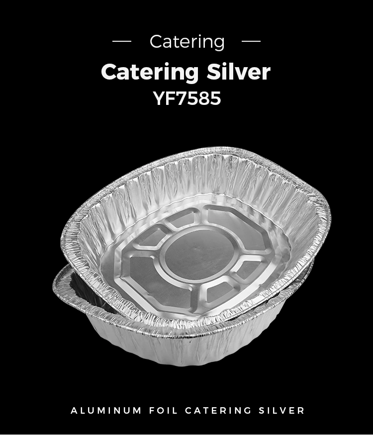 Yunchu aluminum foil wholesale Large capacity grilled chicken griddle Silver Aluminum Foil Containers, large capacity can be adapted to a wide range, the scene is the same, takeaway, wholesale flow suppliers, large parties, can provide large portions of restaurants, prefabricated dishes, restaurant refrigeration and other places that need to be used, large gatherings and company dinners are also suitable, the product can support equipment heating, can be immediately heated at ginamit sa panlabas at iba pang mga sitwasyon, ang pangkalahatang istraktura ay pinagsasama ang mga stiffener at sa ilalim ng regular na malukot at hugis na convex, upang ang tibay at kaligtasan nito ay garantisado.