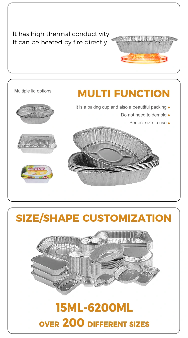 Ang produktong ito ay isang produktong magagamit at hindi kailangang linisin, na nakakatipid sa mga gastos sa paggawa. Maaari itong ipares sa PET na ganap na transparent na takip ng foil na aluminyo, na epektibong pinipigilan ang alikabok at likido na pagtagas. Ang tibay at kaligtasan ng produkto ay pinahusay ng disenyo ng mga stiffeners at ang regular na concave at convex na hugis ng ilalim. Ang portable na disenyo ay ginagawang madali upang dalhin at init, lumalaban sa mataas at mababang temperatura, maaaring magamit sa isang saklaw ng temperatura na -20 ° C hanggang 250 ° C, at hindi mahahalata sa langis at tubig, pagpapahusay ng pagpapanatili ng init at higpit ng transportasyon ng produkto.