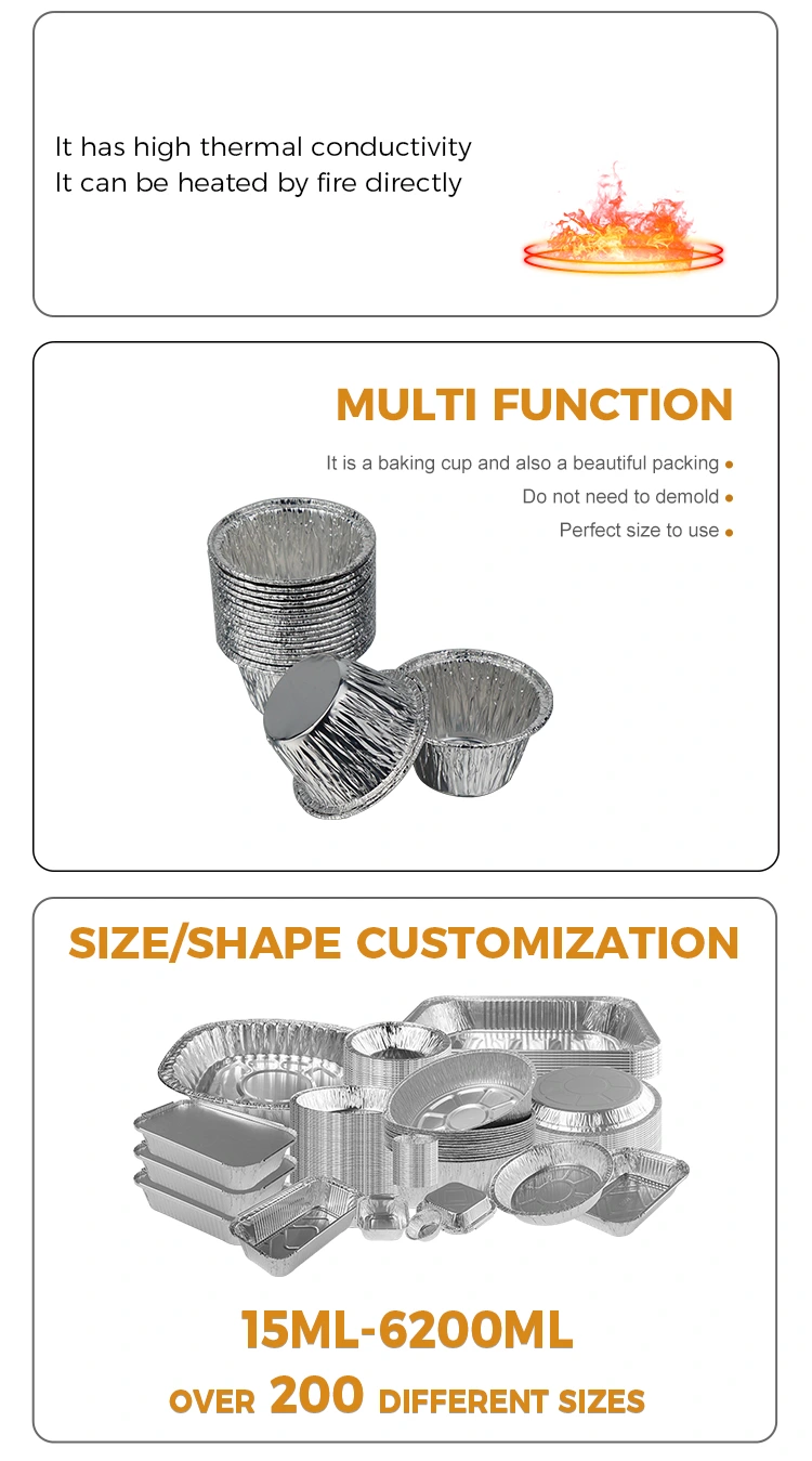 Gumagamit ng 8011-O food-grade aluminum foil ang Yunchu Aluminum Foil Manufacturer Manufacturer, na nakapasa sa sertipikasyon sa kaligtasan sa pakikipag-ugnayan sa pagkain ng US FDA at sumusunod sa mga pamantayan sa kaligtasan ng materyal sa pakikipag-ugnayan sa pagkain ng EU SGS. Pagkatapos ng propesyonal na pagsubok, wala itong amoy at walang nakakapinsalang residues. Maaari itong direktang makipag-ugnayan sa lahat ng uri ng pagkain. Hindi madaling ma-deform o masira. Ito ay epektibong tumagas at anti-stick. Maaari itong direktang maglaman ng mga likidong sangkap tulad ng cake batter, pudding liquid, sauce, atbp. Ang panlabas na rolled edge na disenyo ay anti-scratch, na binabawasan ang panganib ng pagkamot ng iyong mga kamay. Ang hanay ng paglaban sa temperatura ay sumasaklaw sa -40 ℃ hanggang 220 ℃, at maaari itong iakma sa mga air fryer, oven, steamer, at microwave oven (medium-low heat). Maaari itong direktang ilagay sa air fryer upang maghurno ng mga mini cake at egg tart, at maaari ding gamitin upang direktang magpainit ng mga frozen na sangkap pagkatapos matunaw, matugunan ang iba't ibang pangangailangan sa pagluluto at pagluluto.