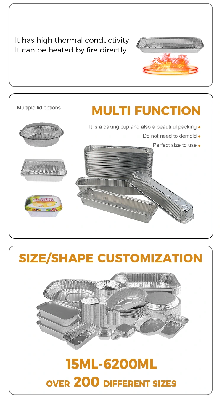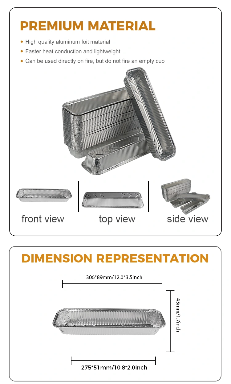Ang hugis -parihaba na tinapay na tray na baking pilak na aluminyo na lalagyan ng foil ay sumasailalim sa mahigpit na kalidad ng pagsubok upang matiyak na walang mga nakakapinsalang sangkap na pinakawalan sa panahon ng bukas na pag -init ng apoy, at ang mga gumagamit ay hindi kailangang mag -alala tungkol sa mga isyu sa kaligtasan. Bilang karagdagan, ang eco-friendly at matibay na disenyo ay hindi lamang nagsisiguro sa ligtas na transportasyon ng mga produkto ngunit pinapanatili din ang pinakamahusay na hitsura. Ang disenyo ng malukot at convex sa ilalim ay nagpapabuti sa mga katangian ng anti-slip ng produkto, habang ang mga idinagdag na mga stiffener sa mga gilid ay nagdaragdag ng tigas ng produkto. Ang disenyo ng hemming ay pinalapot at pinalalim, na may mahusay na mataas na temperatura ng paglaban at thermal conductivity, na maaaring makamit ang pantay na pag -init at walang kakaibang amoy, ginagawa itong angkop para magamit sa maraming mga sitwasyon tulad ng pag -ihaw ng uling, mahabang tinapay, at paghahatid ng takeaway.