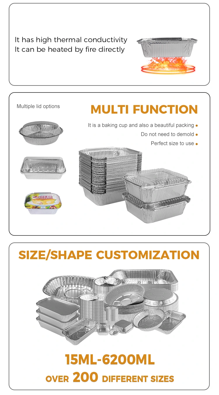 Ang hugis -parihaba na gratin ay nakabalot na mga lalagyan ng foil na aluminyo na aluminyo