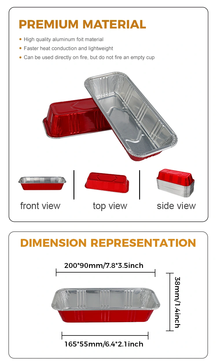 Ang Yunchu aluminyo foil ay nagbibigay sa iyo ng mataas na kalidad na hugis-parihaba na pulang panaderya na nakatutustos ng pilak na mga lalagyan ng foil na aluminyo, na idinisenyo upang maging matibay at lumalaban sa init, ay maaaring pantay na magsagawa ng init upang maiwasan ang charring, at magkaroon ng malakas na pagbubuklod upang mapanatili ang sariwa.