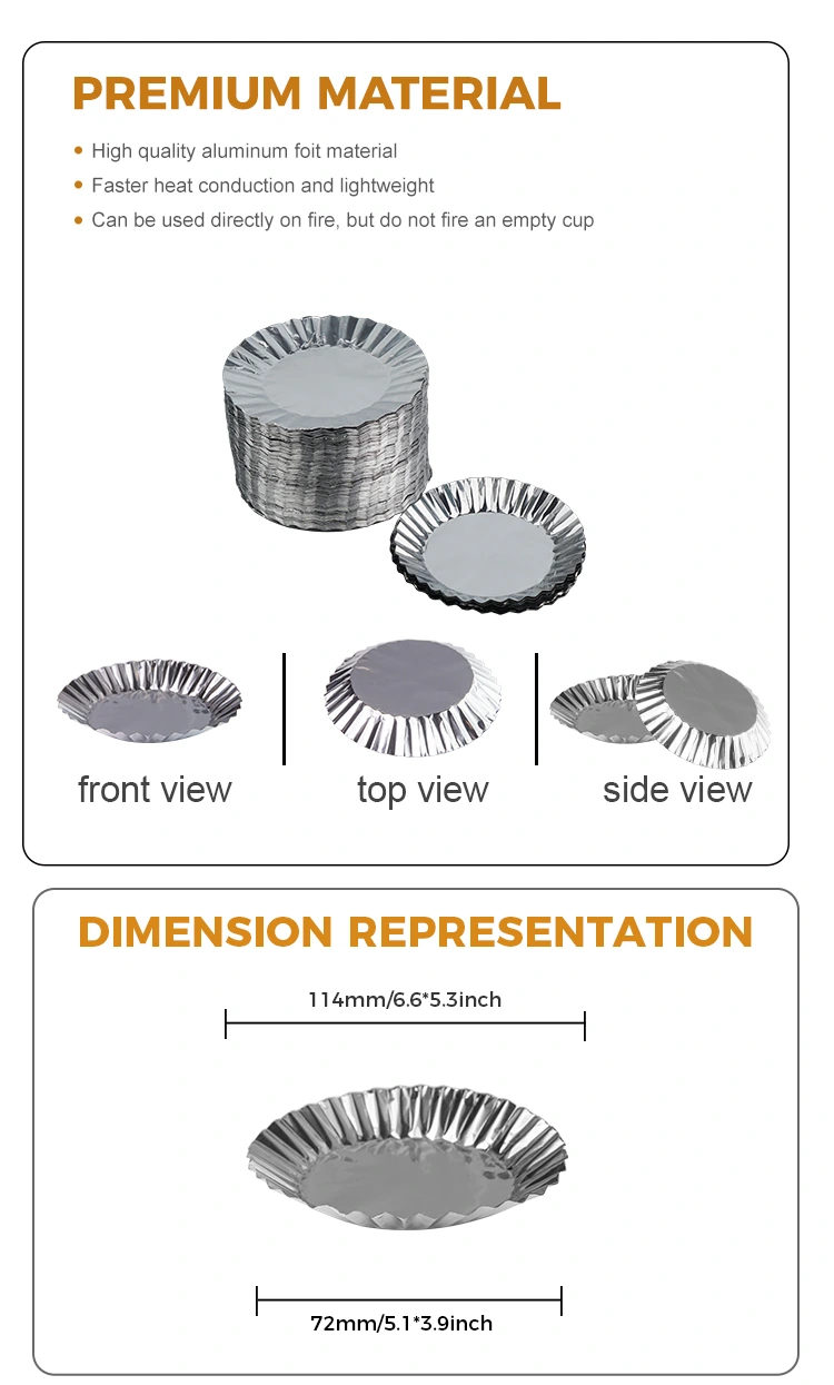 Ang materyal ng pag-ikot ng baking cake foil liner na pilak na aluminyo na lalagyan ay gawa sa de-kalidad na foil ng aluminyo, na may mahusay na paglaban sa mataas na temperatura at maaaring epektibong maiwasan ang grasa mula sa pagkain mula sa pagtagos sa foil, kaya pinapanatili ang pagiging bago at lasa ng pagkain. Ang ibabaw nito ay makinis at maselan, na ginagawang madali upang maglagay ng pagkain sa loob nang hindi umaalis sa anumang nalalabi.