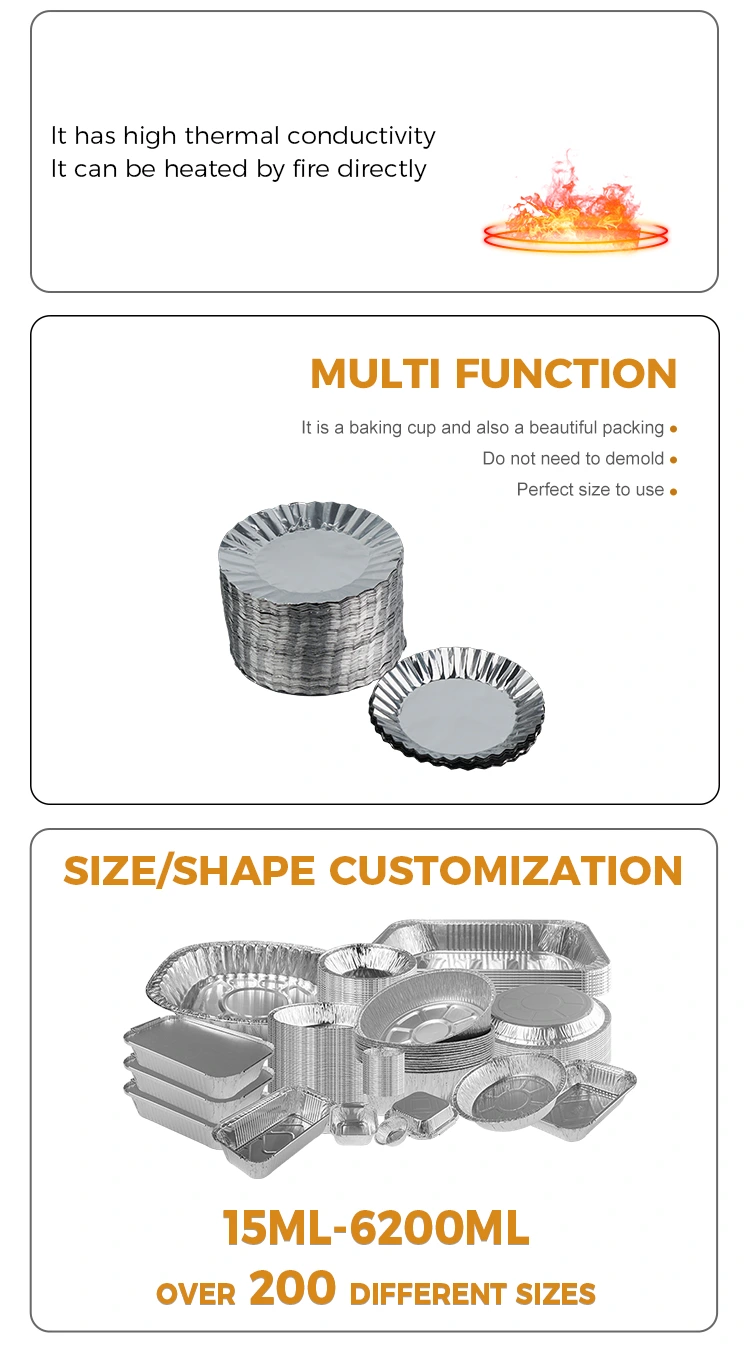 Ang pag -ikot ng baking cake lata na may pilak na aluminyo foil container container na ibinigay ng yunchu aluminyo foil supplier, na gawa sa pilak na aluminyo foil, ay idinisenyo upang gawin ang iyong pagkain kapwa masarap at biswal na nakakaakit. Paano mo mapapanatili ang iyong pagkain mula sa kontaminado habang naghahanap pa rin ng mas pino at maganda? Ang sagot ay ang paggamit ng isang bilog na cake ng hulma ng foil mat!
