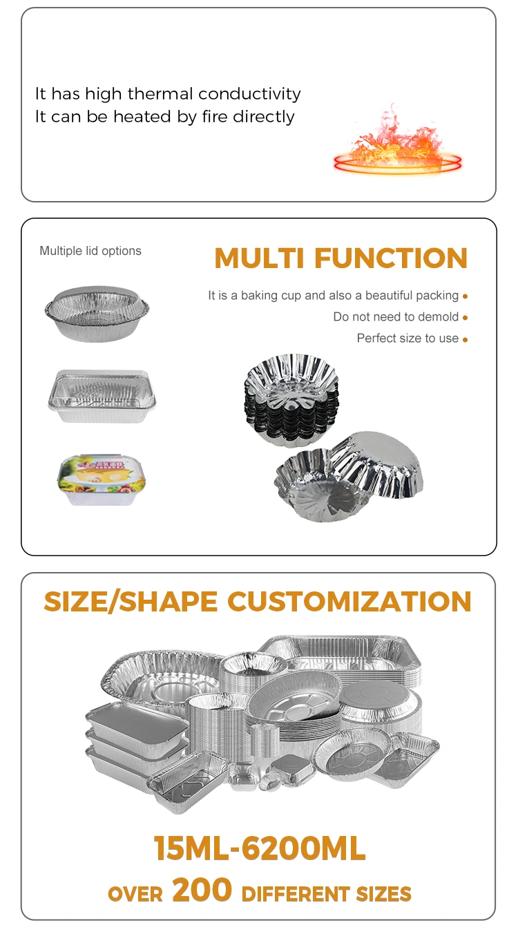 Yunchu aluminyo foil supplier round egg tart laruan baking pilak aluminyo foil food container. Ang egg tart tray na ito ay hindi lamang mukhang maganda, ngunit nagbabayad din ng espesyal na pansin sa pagiging praktiko at kaligtasan. Ang tray ng egg tart na ito ay nagtatampok ng isang non-slip na disenyo ng tasa na may isang non-slip na texture na nagdaragdag ng alitan at epektibong pinipigilan ang pagkain mula sa pagdulas, na ginagawang matatag ang iyong mga resulta sa pagluluto. Pangalawa, ang disenyo ng bibig ng tasa ng puntas nito ay maaaring nakatiklop at maiimbak, na kung saan ay parehong naka-save ng espasyo at portable, na ginagawang perpekto para sa mga pamilya o maliit na mga establisimiyento ng pagtutustos. Ang egg tart tray ay gawa sa foil na grade na aluminyo, na nabuo sa isang pagkakataon at hindi kailangang linisin, na lubos na nagpapabuti sa kahusayan ng paggamit. Ito ay angkop para sa lahat ng mga uri ng mga lutuin, kung ito ay inihurnong tarts, cake, itlog yolk pastry, bowl cake, maaari itong perpektong ipinakita. Ang egg tart tray na ito ay pumasa sa sertipikasyon ng German ERP, ang sertipikasyon ng EU SGS, at ang sertipikasyon ng ISO9001 Quality Management System, tinitiyak ang kaligtasan at pangangalaga sa kapaligiran ng produkto. Ang aming mga hilaw na materyales ay lahat ng malusog at kapaligiran na mga materyales na grade-grade, na nakakatugon sa mga pamantayan sa kaligtasan sa internasyonal na pagkain, upang makakain ka nang may kumpiyansa.