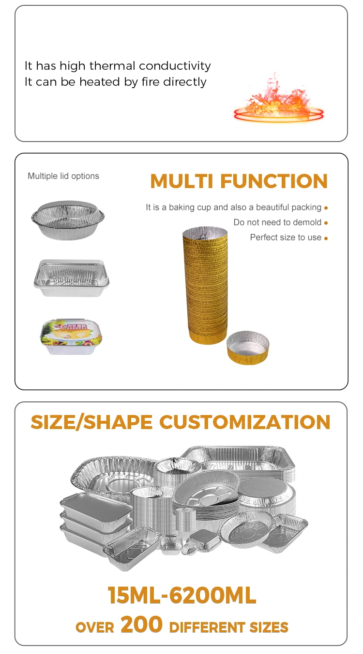 Ang pag -ikot ng maliit na baking pilak na aluminyo na foil na lalagyan ng pagkain ay angkop para sa pag -iimpake ng iba't ibang mga maliliit na produkto ng bakery tulad ng mga macaron, cookies, at tarts. Mahigpit naming kinokontrol ang bawat hakbang sa paggawa sa mga tuntunin ng kontrol ng kalidad upang matiyak na ang lahat ng mga produkto ay nakakatugon sa mga pamantayan sa kaligtasan ng pambansang, at naipasa ang sertipikasyon ng German ERP, sertipikasyon ng EU SGS at sertipikasyon ng ISO9001.