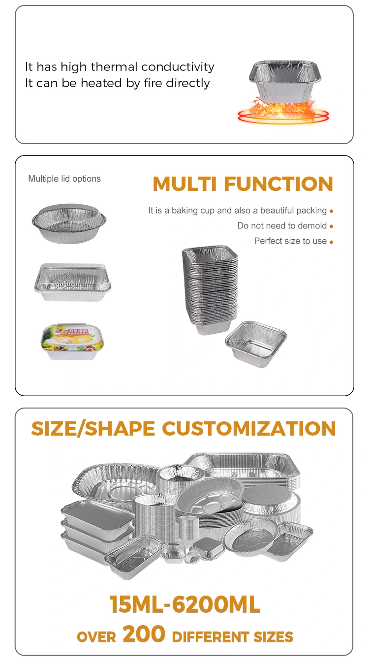 Yunchu aluminyo foil supplier square air fryer pilak aluminyo foil container in catering, home air fryer production, na may takeaway delivery, buffet sauces, banquets at iba pang mga lugar, ngunit angkop din para sa mga steamed egg, tsokolate, biscuits, maliit na cake, sauces at iba pang mga saklaw, kung ito ay may pagkain o sarsa, ay maaaring mailapat sa mga lugar na pang -industriya, na maaaring magamit sa mga yakma, ay maaaring magamit sa mga yakong, na maaaring magamit, na maaaring magamit sa mga yakong, na maaaring magamit sa mga yakma, Ang mga maliliit na tasa ng aluminyo ng aluminyo ay maaaring ilayo habang nagdaragdag ng mga puntos sa pinggan, ngunit maaari ring hugasan at magamit nang walang pasanin.