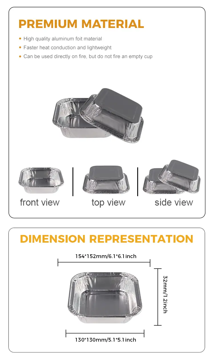 Yunchu aluminum foil supplier model 3217 Square cake air fryer Silver Aluminum Foil ContainersThis style is a home baking, air fryer, catering, take-out packaging, assembly line factory wholesale purchase products, with full curling design, will not scrape your hands when using, provide PET full transparent cover, can provide LOGO silk screen design customization, but the MOQ starts at 5000/piece, if you want to buy other products square Cake Air Fryer Silver Foil Container, mayroong iba't ibang mga pagtutukoy at modelo na pipiliin, maaari kang makipag -ugnay sa mga kawani ng negosyo upang magtanong.